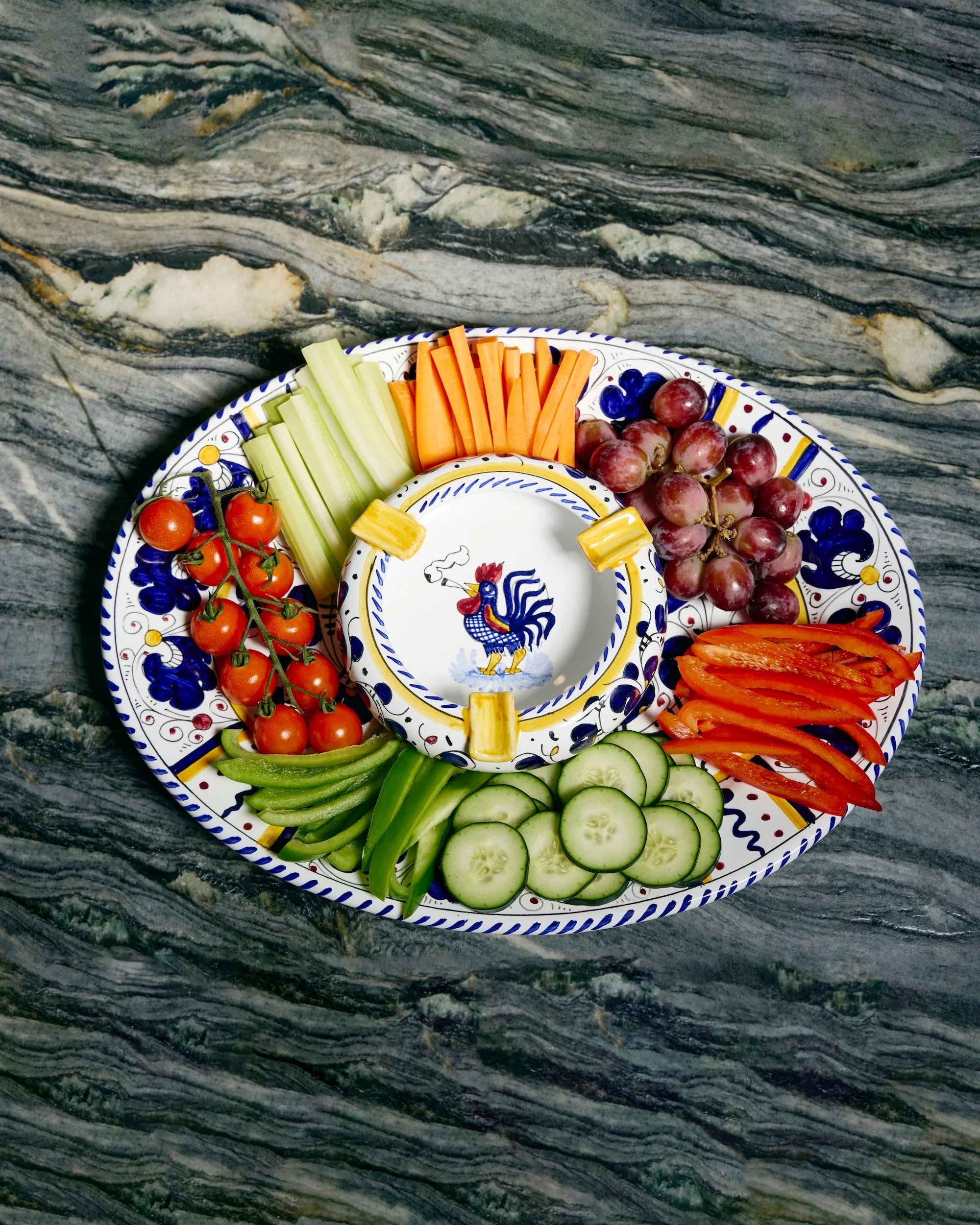 The Rooster Party Ashtray was created specifically for entertaining. Each one is freehand-painted by master artisans in Deruta, Italy, meaning no two are exactly alike. Featuring three smoke-rests and our Smoking Rooster artwork, this ashtray feels like the ideal post-dinner accoutrement. Grab two friends and get the party started!
